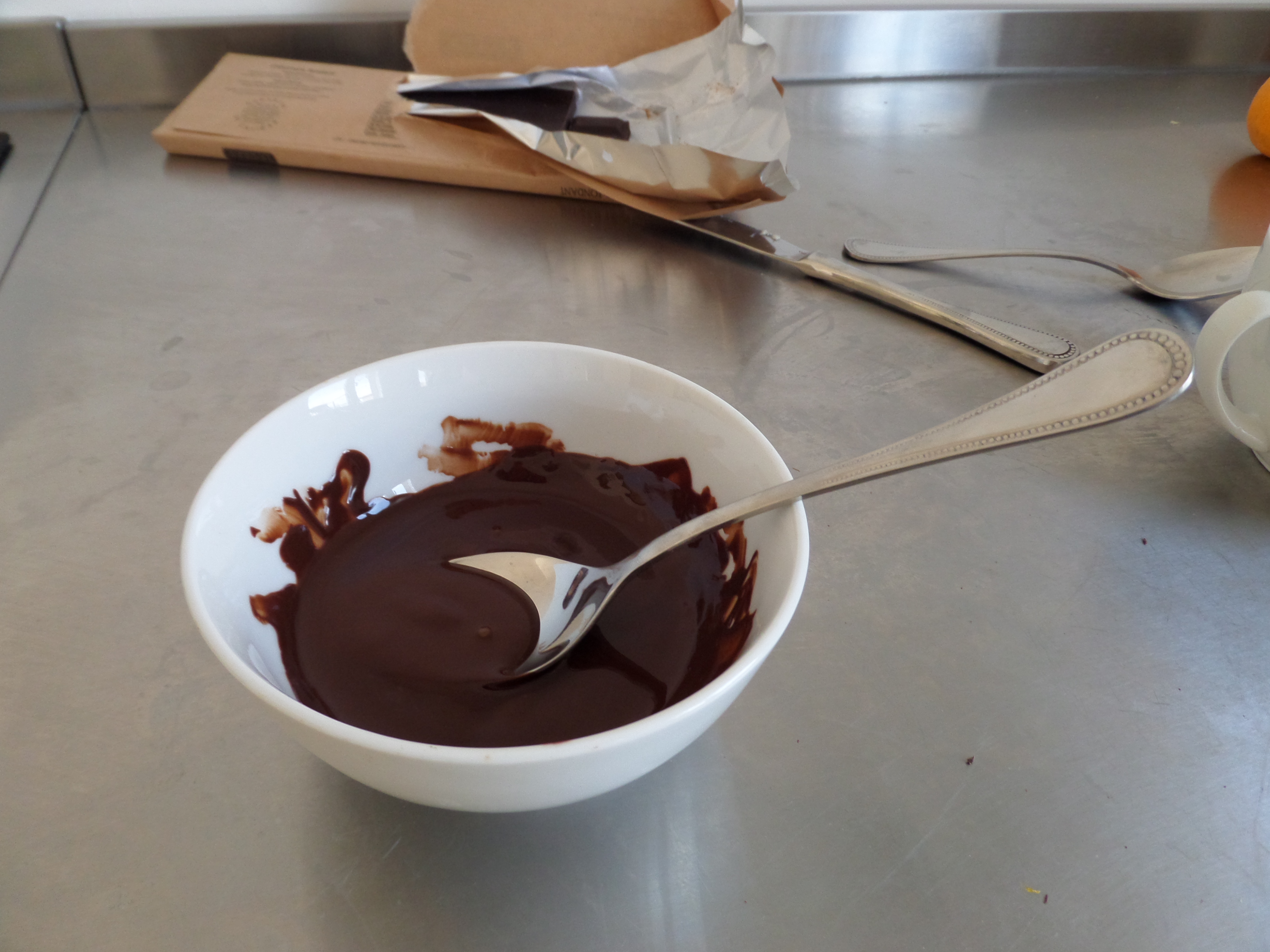 No s’ha de fondre gaire, només que es comencin a desfer les pastilles i aleshores ho remenem amb la cullera.