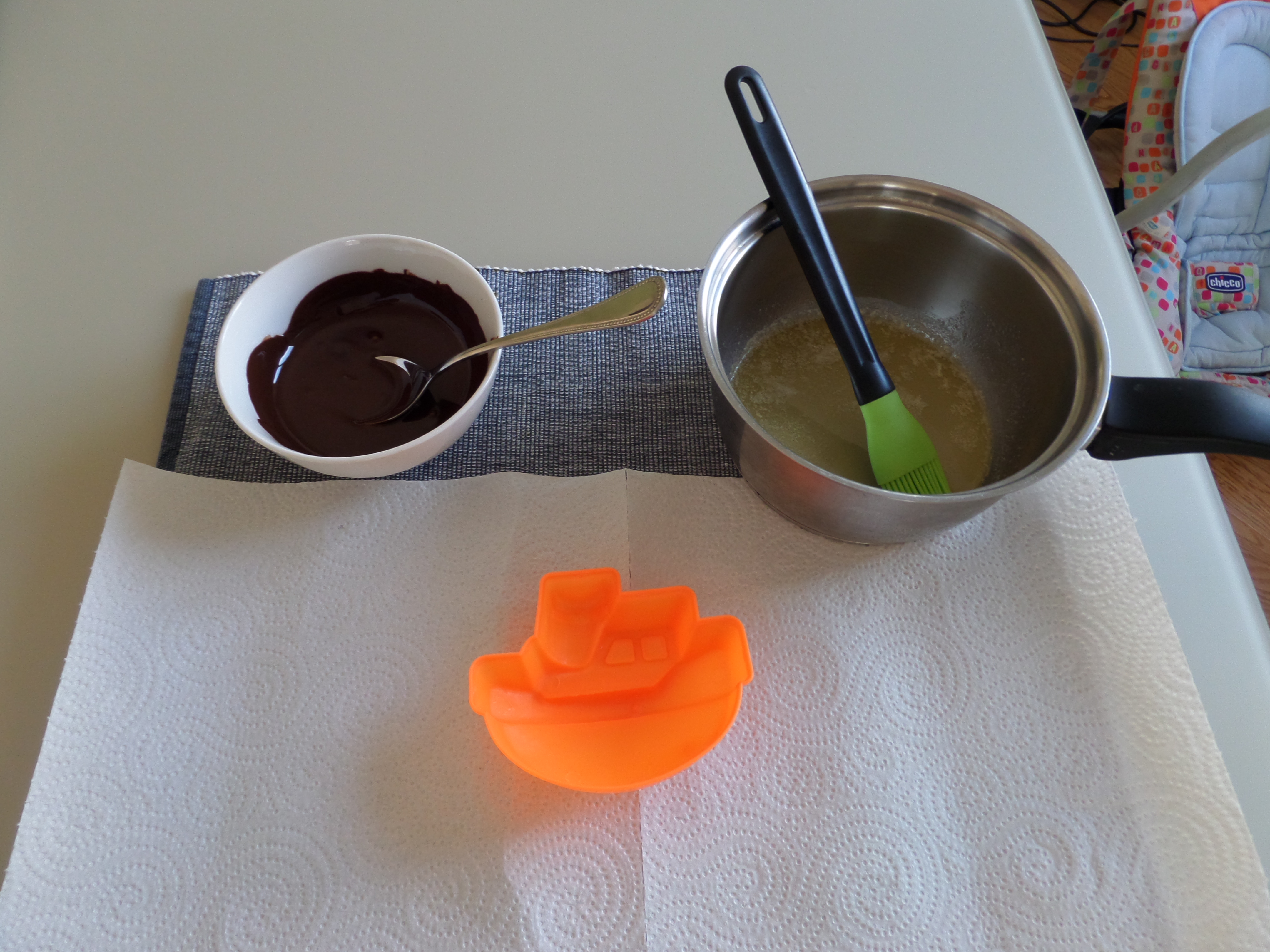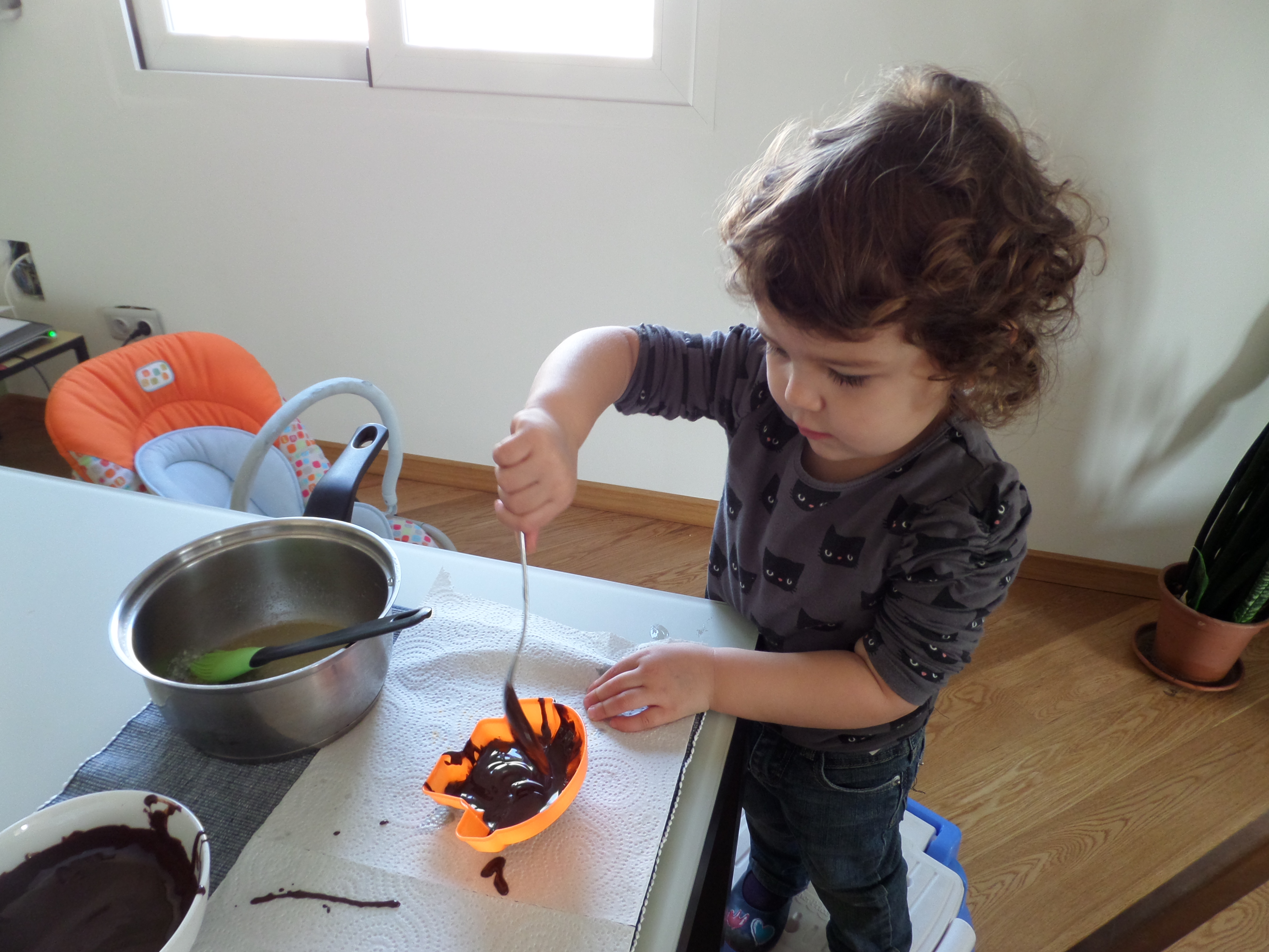 Al blog de gadgets de cuina van escriure un article on s’explica com fondre i temperar la xocolata. Pensant en la mona de Pasqua, hem provat de fer unes figuretes de xocolata.