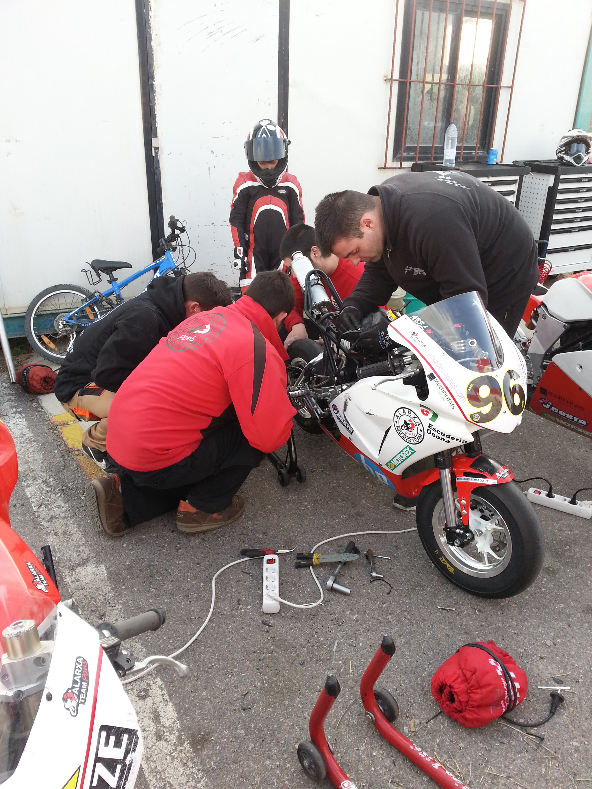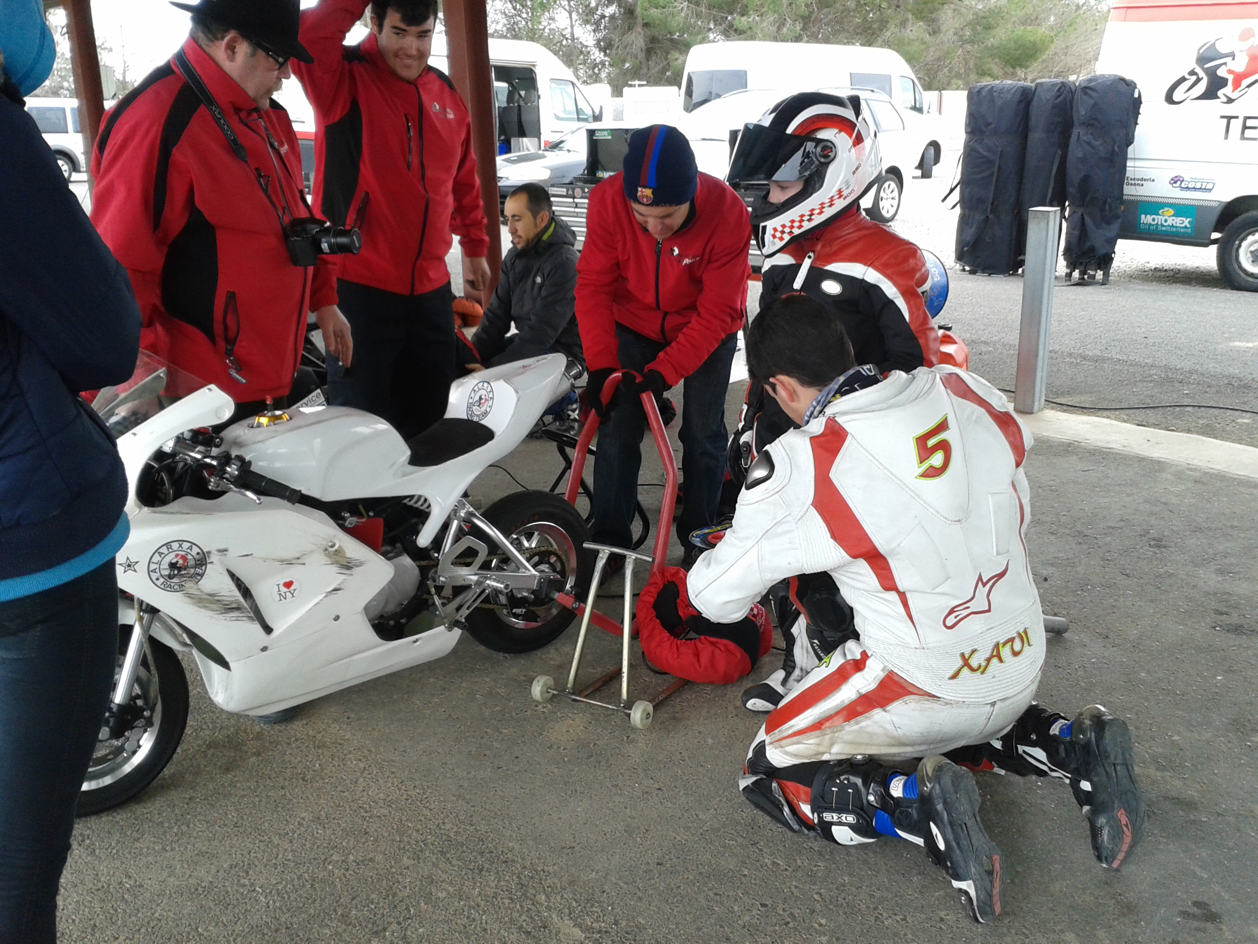 Doncs be, al món de les motos no t’avorreixes mai, la primera meitat dels entrenaments de dissabte no van anar gaire be. A la primera tanda se’m va afluixar la maneta i a la segona se’m va trencar la vàlvula d’admissió d’aire i la moto no accelerava. Perfecte! Comencem be!