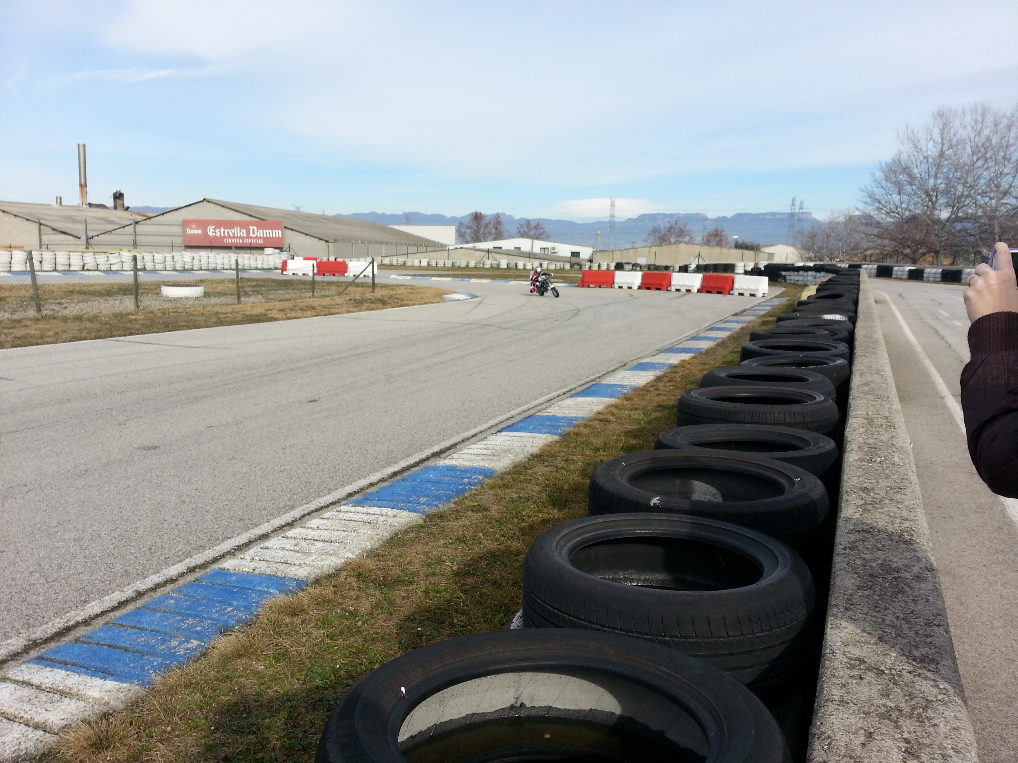 Voleu saber com vaig caure??? doncs de cop i volta, la meva bota dreta va tocar el terra a la corba número 10!!! ja ens teniu, a la moto i a mi, lliscant per l’asfalt … va ser una sensació ben estranya el tenir el terra tan a prop dels nassos, però per sort, no em vaig fer mal.